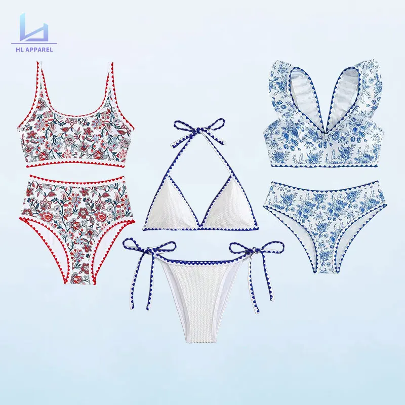 Huili Manufacturer Oem Design Side Ties Women's Swimwear Two Piece Ruched Detailing Beachwear Custom Floral Print Bikini Set